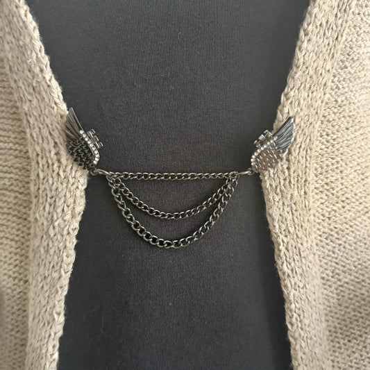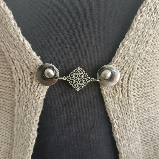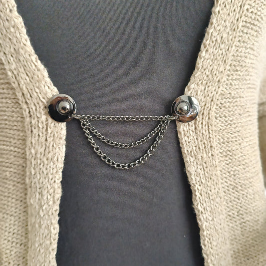 Deze basis vestsluitingen zijn onze klassiekers. Twee clips verbonden met een vaste bedel, handgemaakt in Groningen. Ideaal voor vesten, omslagdoeken en sjaals — decoratief én functioneel in gebruik.